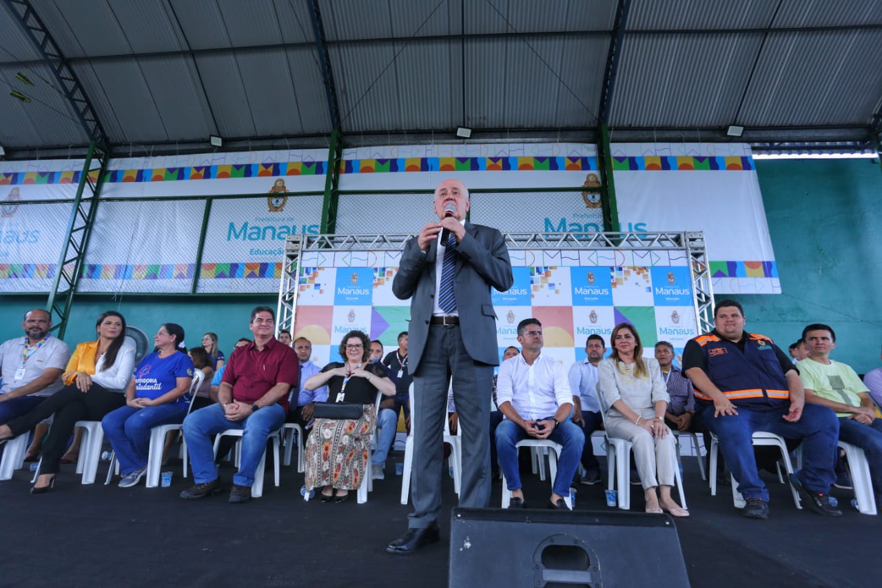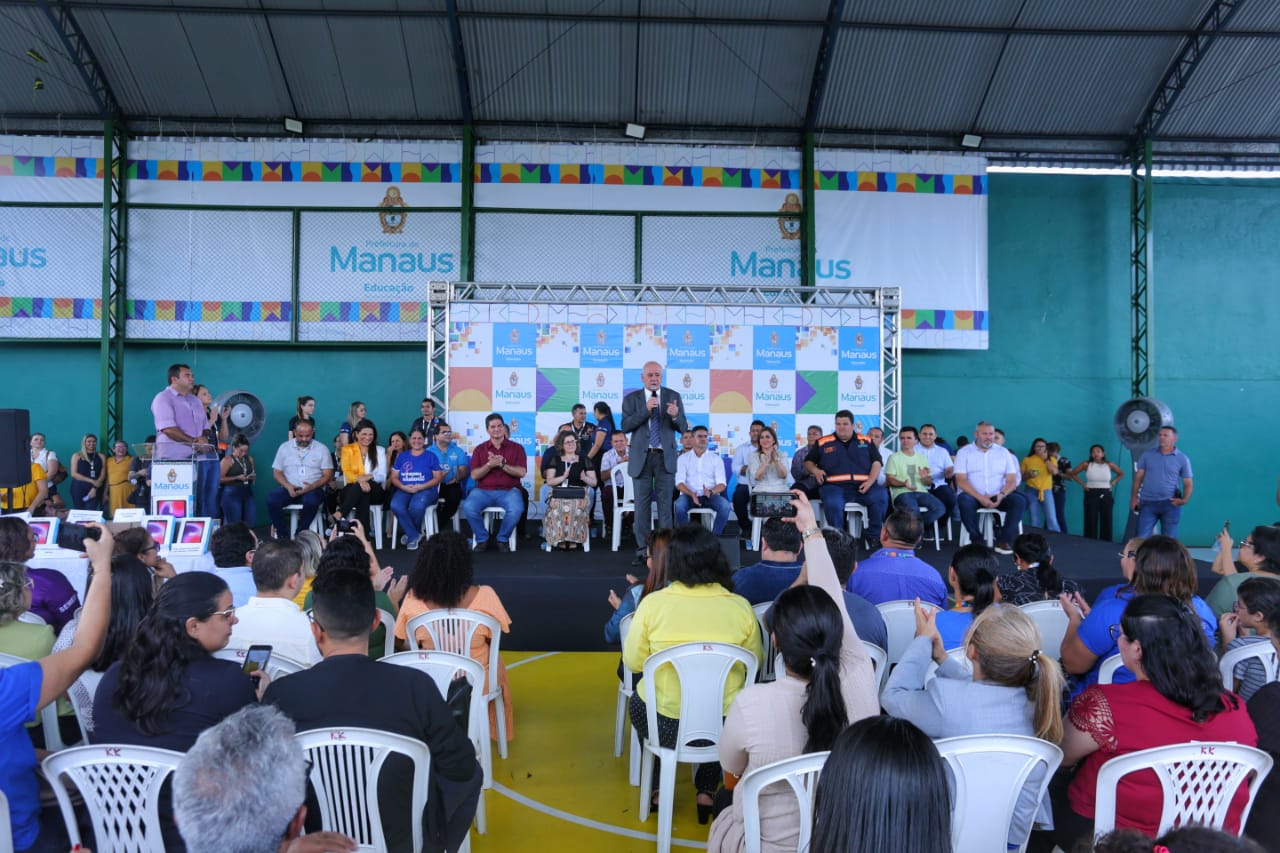 O prefeito de Manaus, David Almeida (Avante), e a secretária municipal de Educação, Dulce Almeida também estiveram presentes.
