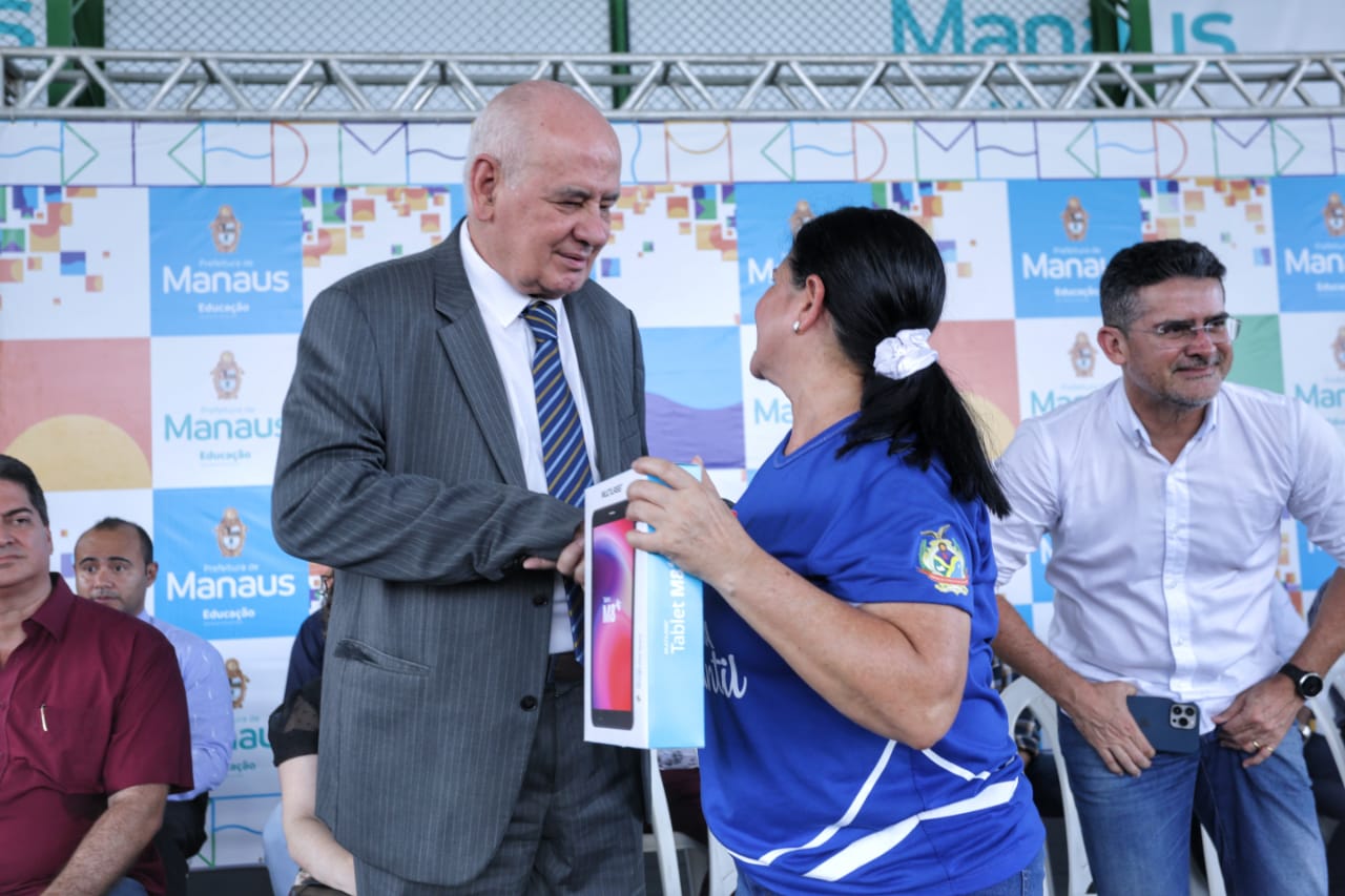 O deputado estadual Serafim Corrêa (PSB) participou da entrega de 547 tablets a professores de escolas municipais de Manaus. A cerimônia de entrega ocorreu na na manhã desta sexta-feira (3), na Escola Municipal Jarlece Zaranza, localizada no bairro Novo Aleixo, Zona Leste. A Escola e mais 13 unidades municipais foram contempladas através das emendas de Serafim, no valor de R$ 604 mil.